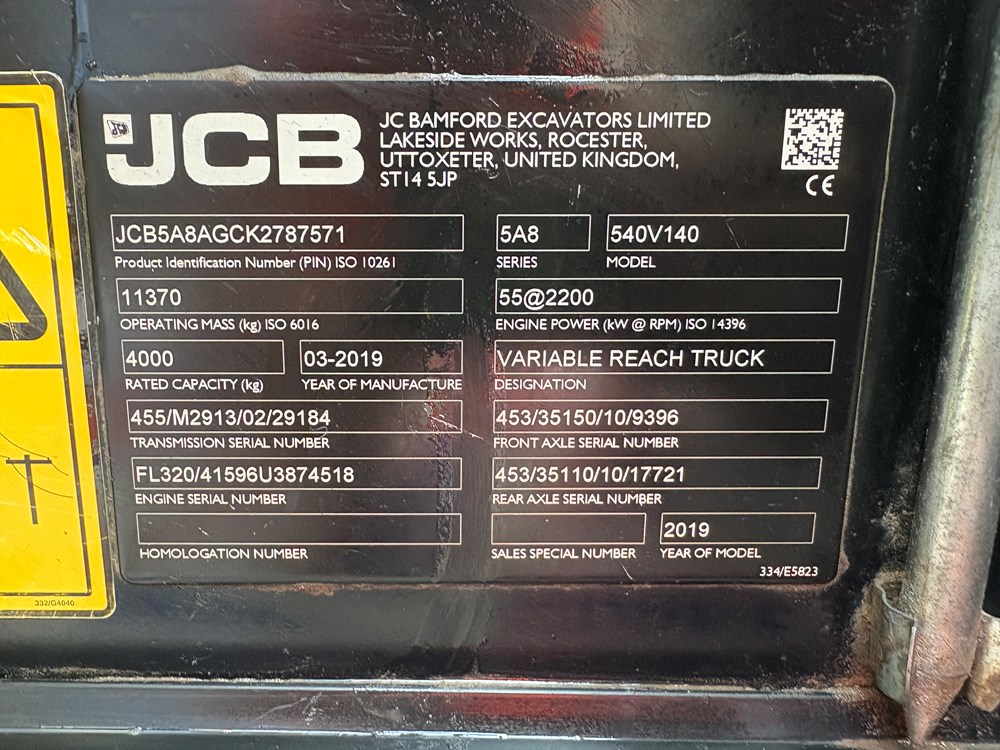 2019 JCB 540-140 Telehandler with SWAY.